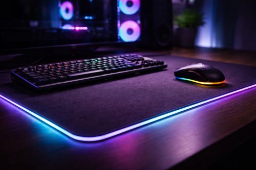 - Deskmat (asztalterítő egérpad): az egér mellett a billentyűzet is ugyanazon a felületen áll. Egységes „szigetet” ad a perifériáknak, és sokaknak egyszerűen kényelmesebb, rendezettebb érzetet kelt.