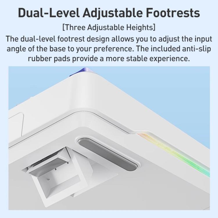 A billentyűzet teljesen hot-swappable, támogatja a 3- és 5-pines mechanikus kapcsolókat, így forrasztás nélkül testreszabható. A south-facing, gombonkénti RGB világítás élénk, egyenletes fényt biztosít, rengeteg effektussal és teljes színkontrollal.