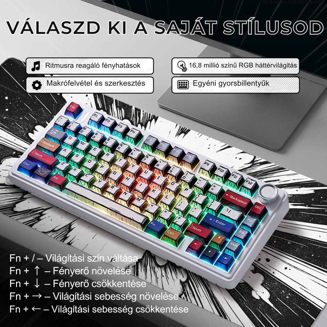AULA F75 Vezeték Nélküli Mechanikus Gamer Billentyűzet - Comic