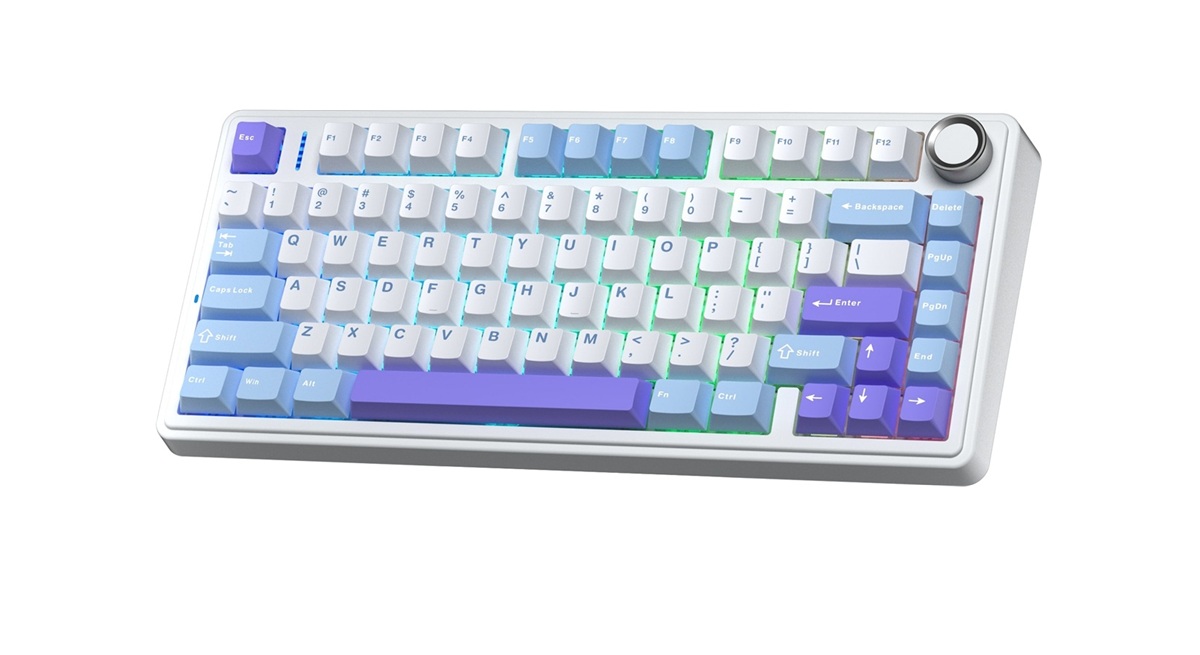 AULA F75 Vezeték Nélküli Mechanikus Gamer Billentyűzet - Fehér-Kék-Lila