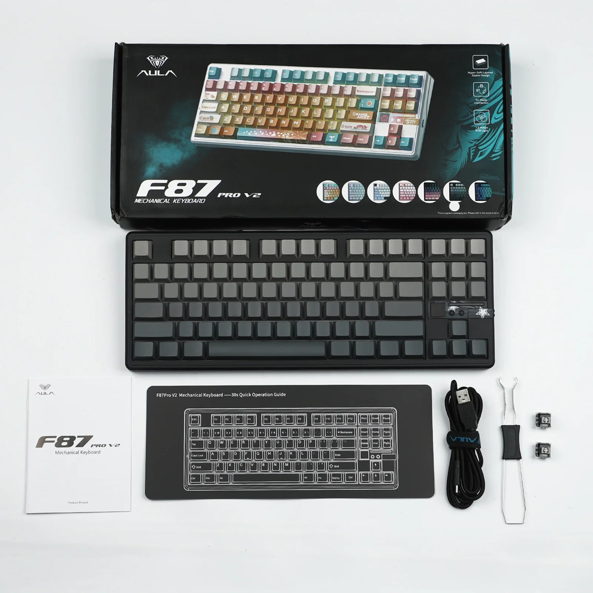 Az AULA F87 PRO V2 egy TKL (Tenkeyless) kialakítású, felsőkategóriás mechanikus billentyűzet, amely tökéletes egyensúlyt teremt a kompakt méret, a professzionális gamer funkciók és a prémium gépelési élmény között. Ideális választás e-sporthoz, gaminghez és irodai használatra is.