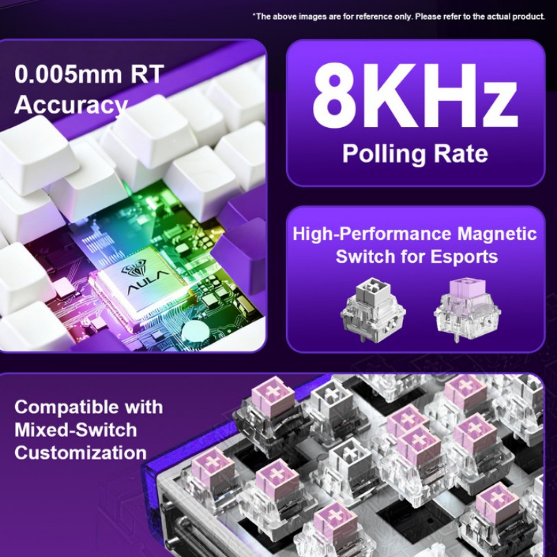 A billentyűzet magnetic switch technológiát használ, amely lehetővé teszi a 0,005 mm-es RT pontosságot, holtjáték nélkül. Ennek köszönhetően minden leütés azonnal és pontosan regisztrálódik, ami kritikus előnyt jelent kompetitív játék során. A mixed switch támogatás révén különböző mágneses kapcsolók is használhatók egy billentyűzeten belül.