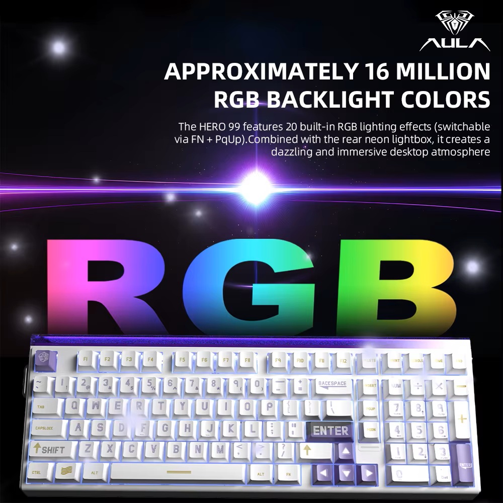 Az AULA HERO 99 egy kifejezetten kompetitív e-sport játékosoknak tervezett, mágneses switch-es gamer billentyűzet, amely extrém sebességet, brutális pontosságot és prémium akusztikai kialakítást kínál. A 99%-os kiosztás megőrzi a funkcionalitást, miközben kompaktabb helyigényt biztosít, így ideális FPS, MOBA és esport környezetbe.