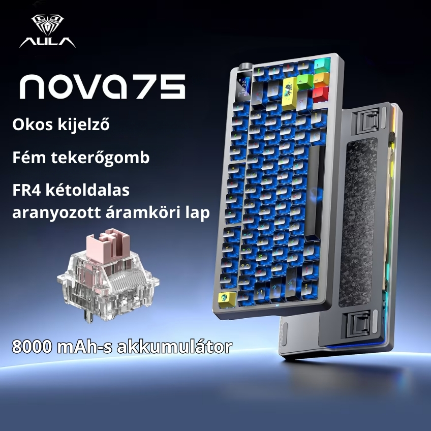 AULA NOVA75 Smart Custom Mechanical Keyboard – Tri-Mode, Smart Kijelzővel