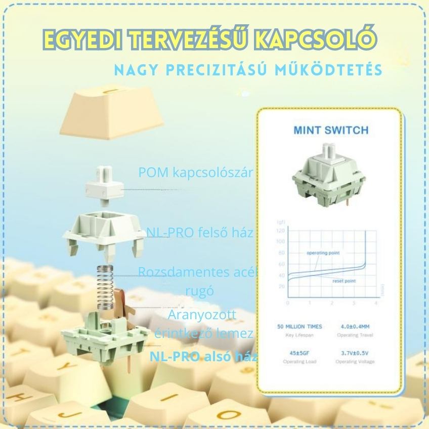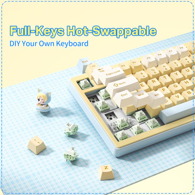 A full-key hot-swappable kialakítás lehetővé teszi, hogy bármelyik kapcsolót forrasztás nélkül cseréld. Így könnyedén testre szabhatod a gépelési és játékélményt, akár halkabb, akár határozottabb visszajelzést szeretnél.