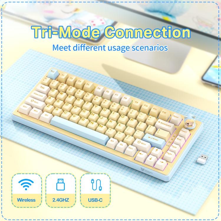 Onikuma MT707 Tri-Mode Vezeték Nélküli Mechanikus Gamer Billentyűzet - Sárga