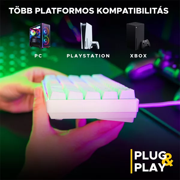 A TKL kivitelből hiányzik a numerikus rész, így kevesebb helyet foglal az asztalodon. Ez több helyet hagy az egérnek, ami kényelmesebb lehet játékban és munkában is. Könnyebb hordozni is, ha például LAN-ra vagy laptop mellé viszed. A kompakt méret ellenére minden fontos funkció kéznél marad.