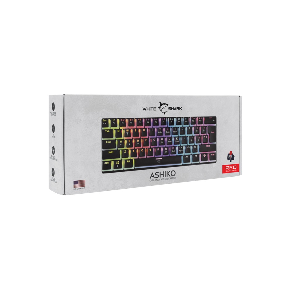 White Shark ASHIKO GK-2202B/R-US az amerikai játékbillentyűzet a legjobb eszköz minden PC-játékos számára, aki a virtuális világ legkeményebb főnökét is le akarja győzni.