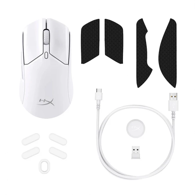 Kétféle vezeték nélküli kapcsolatot kínál: válthatsz a 2,4 GHz-es vezeték nélküli és a Bluetooth mód között, illetve a mellékelt USB-C–USB-A kábellel töltés közben vezetékes módban is használhatod. Az hibátlan HyperX 26K szenzor natív DPI felbontása akár 26 000 is lehet, a követési sebessége pedig akár 650 IPS. Az egyedi HyperX kapcsolók minden kattintásnál tapintható és hallható visszajelzést adnak, ráadásul akár 100 millió kattintásig bírják. A jobb fizikai irányításról a sima, alacsony súrlódású talpak és a mellékelt markolatszalag gondoskodnak.