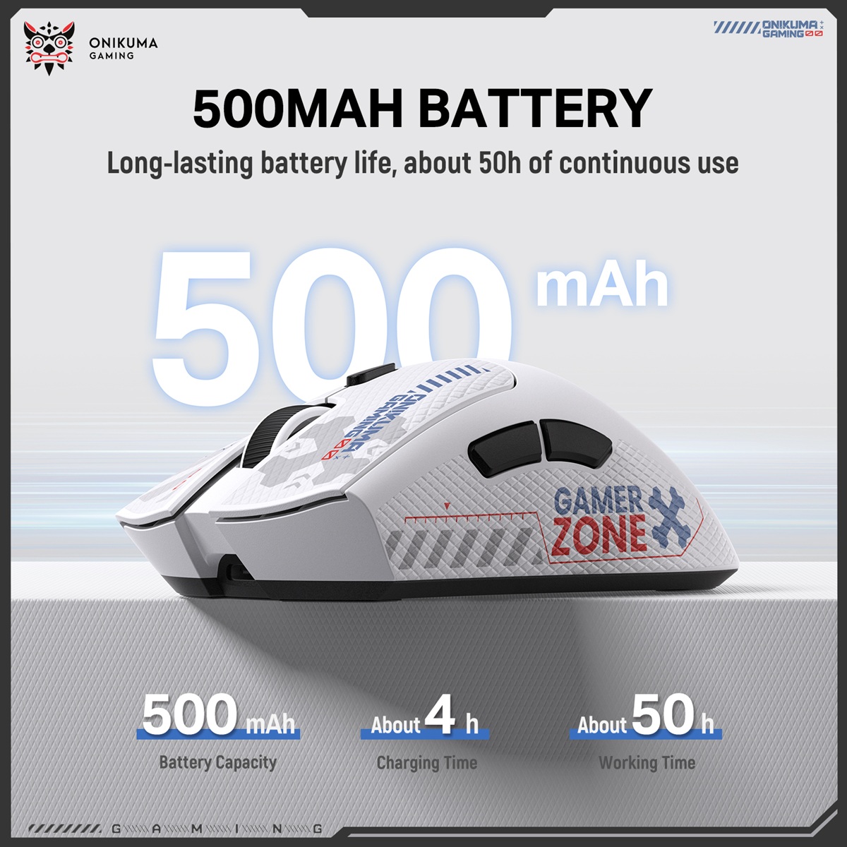 Onikuma DM01 Tri-Mode Vezeték Nélküli Gamer Egér - Fehér