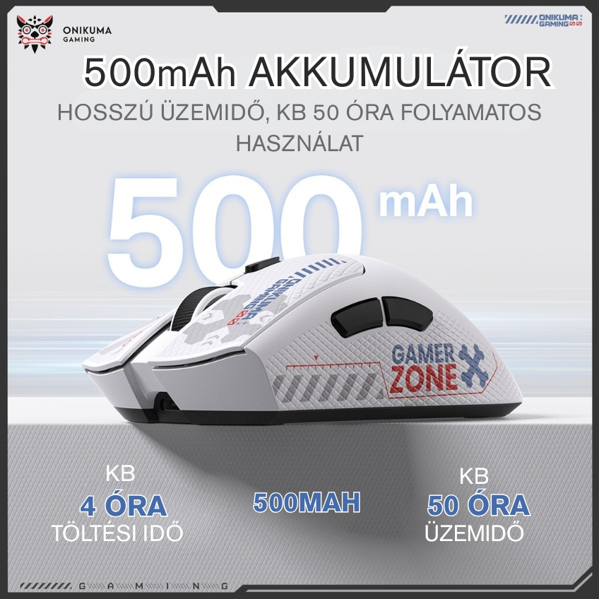 - 500 mAh akkumulátor, akár 50 óra üzemidő
