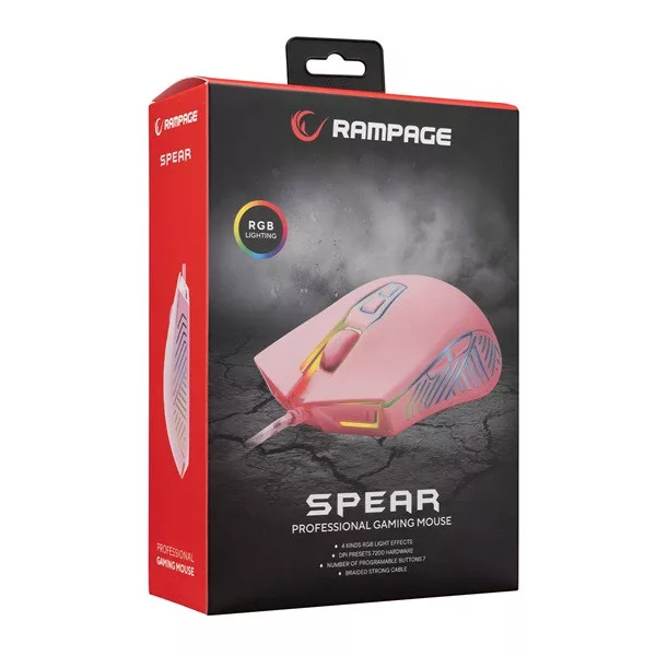 A Rampage SMX-G68 SPEAR Gamer Pink egér tökéletes választás, ha nem csak a teljesítményre, hanem a megjelenésre is adsz. A feltűnő rózsaszín dizájn azonnal magára vonja a tekintetet, így remekül passzol egy egyedi, stílusos gaming setuphoz. Ez az egér azonban nem csak szép — komoly tudás is társul mellé, hogy játék közben a maximumot hozhasd ki magadból.