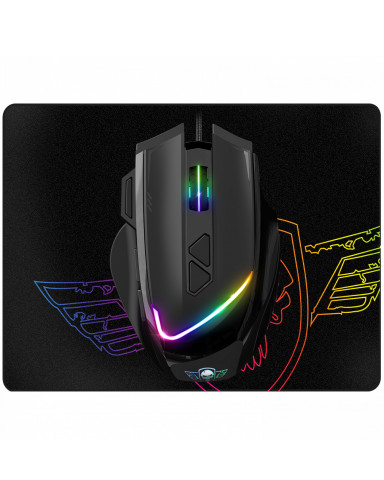 A tartozék egérpad tökéletesen tökéletes felületet biztosít az egérnek, 3 mm vastagsága pedig megfelelő kényelmet nyújt a hosszú játékmenetek során.