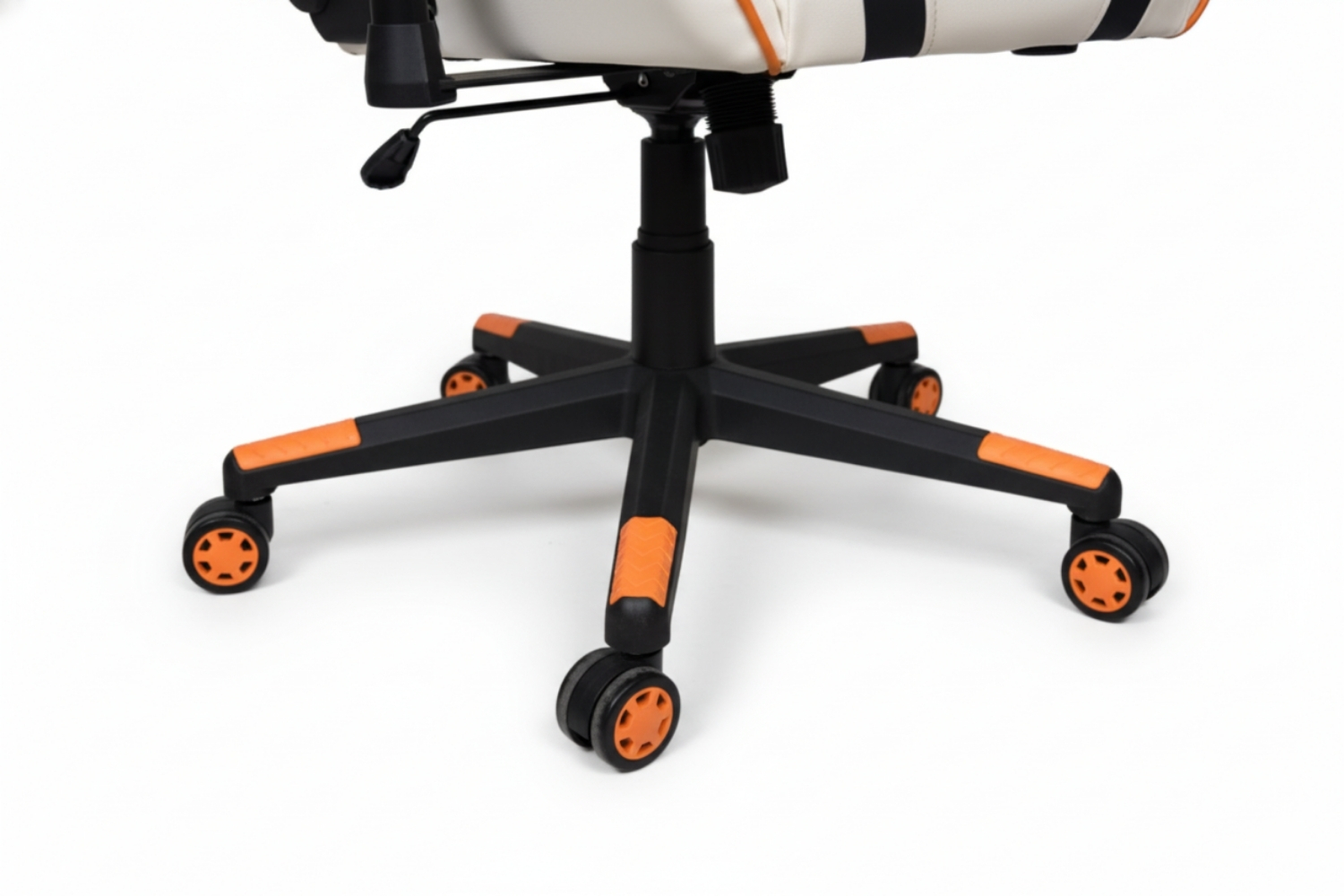 A lendületes stílus megtestesítője az új Bandit Blaze gamer szék! A fekete–fehér–narancs színkombináció dinamikus megjelenést kölcsönöz, míg a prémium PVE műbőr kárpit steppelt mintája nemcsak látványos, hanem a tartósságot is növeli.