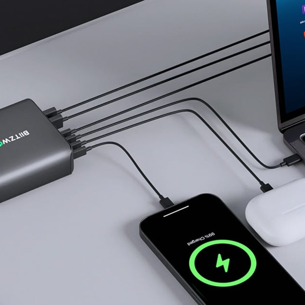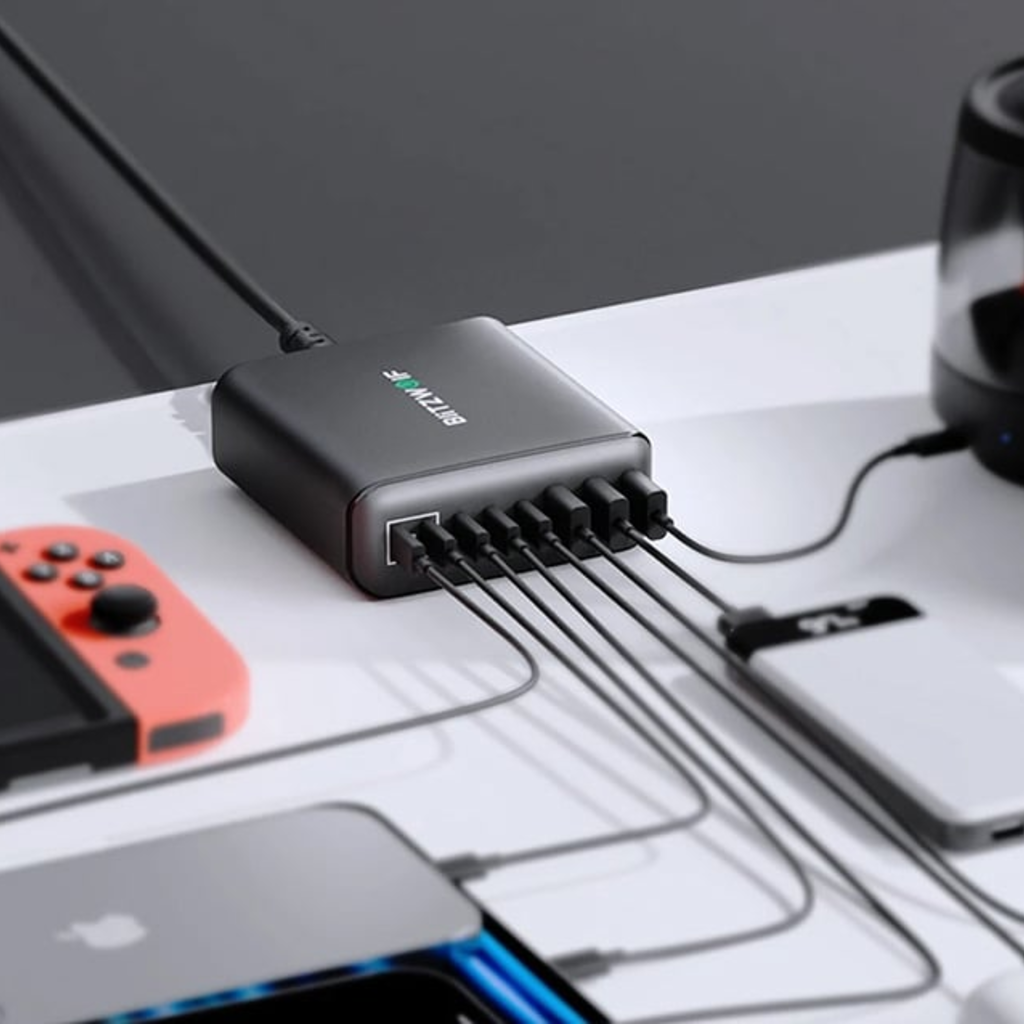 A BlitzWolf BW-S26 egy hálózati töltő, amely számos eszközzel kompatibilis, beleértve a laptopokat, okostelefonokat és táblagépeket. A GaN technológiának köszönhetően a töltő hatékony és kompakt, így kis méret mellett is nagy teljesítményt nyújt. Ráadásul akár 8 portot is kapsz, ami lehetővé teszi több eszköz egyidejű töltését.