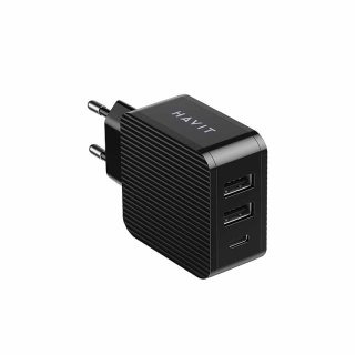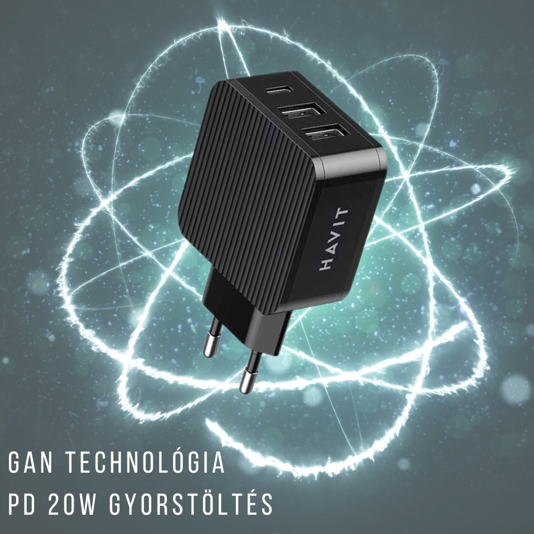 Háromportos USB töltő, amely egyszerre képes több eszköz töltésére.