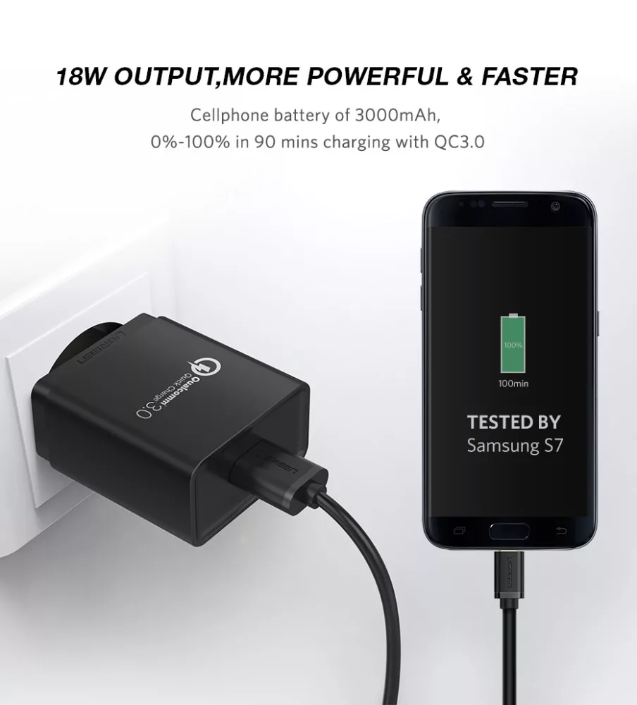 A Quick Charge 3.0 technológiának köszönhetően ez az eszköz négyszer gyorsabban tölti fel a telefonodat, mint egy hagyományos töltő. A töltőt Samsung S7-en tesztelték, és a teljesen lemerült akkumulátort mindössze 90 perc alatt feltölti.