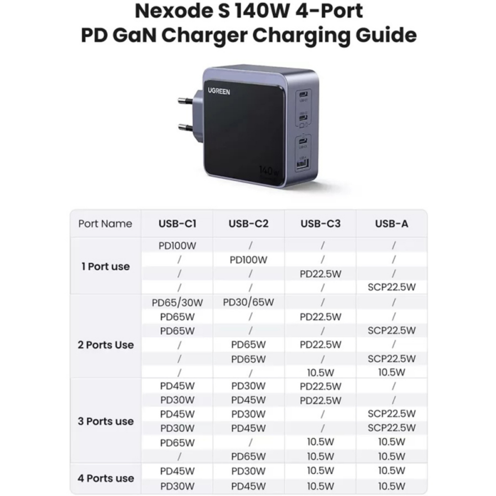 Az Ugreen X570 Nexode S egy forradalmi, 140W-os fali töltő, amely a legmodernebb GaNInfinity™ technológiával készült, hogy a lehető leggyorsabb és legbiztonságosabb töltési élményt nyújtsa az eszközeidnek. Felejtsd el a több töltő vagy kábelrengeteg okozta bosszúságot – ez a kompakt erőmű egyszerre akár négy eszközt is képes energiával ellátni, miközben kiemelkedő teljesítményt és páratlan védelmet biztosít.