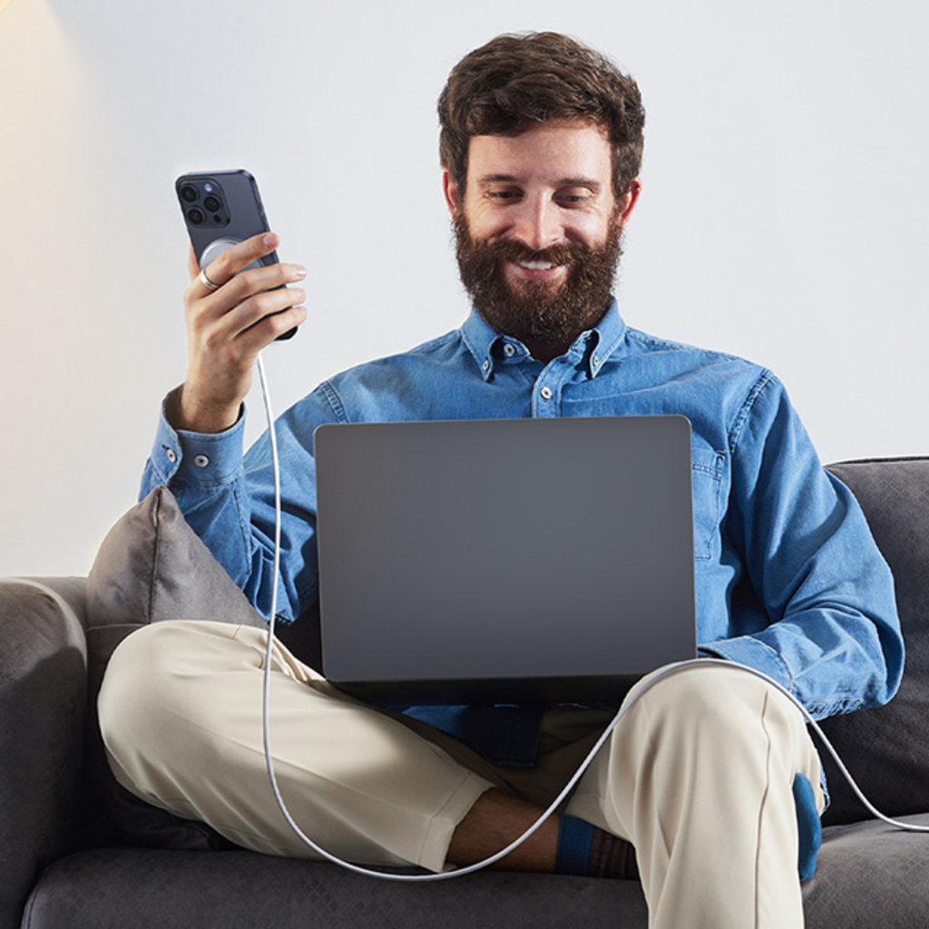 A mellékelt 1,5 méteres USB-C kábelnek köszönhetően a Ugreen W703 maximális szabadságot ad töltés közben. Akár a kanapén, akár az ágyban vagy az íróasztalnál vagy, mindig lesz elég hosszú kábeled, hogy kényelmesen használd a telefonodat. A fonott kábel nemcsak jól néz ki, hanem különösen tartós is.