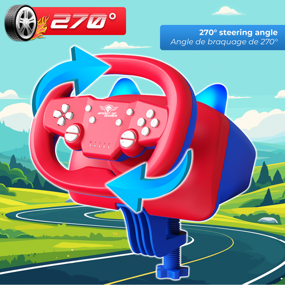 270° : A Race Wheel Pro Air lenyűgöz a hihetetlen, 270°-os kormányelfordulásával, ami szinte valósághű vezetési élményt ad.