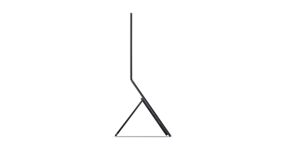 A monitor összecsukható (akár ~315°-ban), így kompakt mérete miatt könnyen szállítható és gyorsan felállítható az integrált állványnak köszönhetően. Egyetlen USB-C kábellel történő csatlakozás elegendő a legtöbb modern laptophoz.
