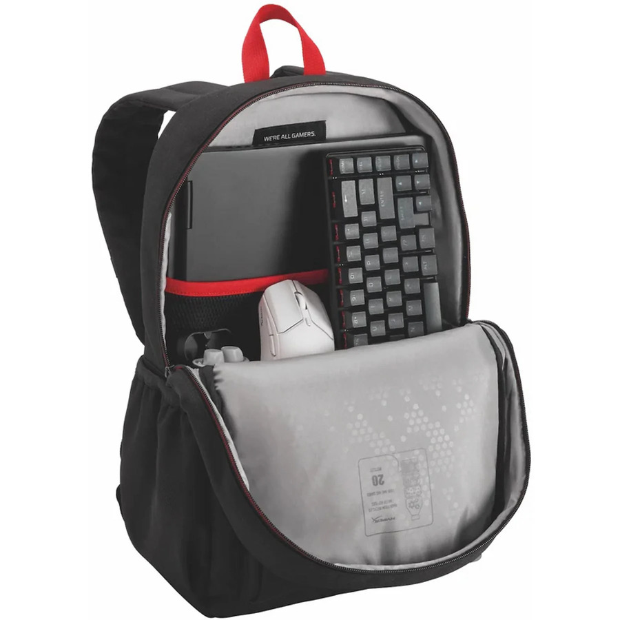 Készült arra, hogy egyszerre vidd magaddal a napi alapcuccaidat és a gaming felszerelésedet. A párnázott laptoprekesz akár 16 hüvelykes gépet is elbír, a külső zsebek pedig akár 1 literes kulacsot is.